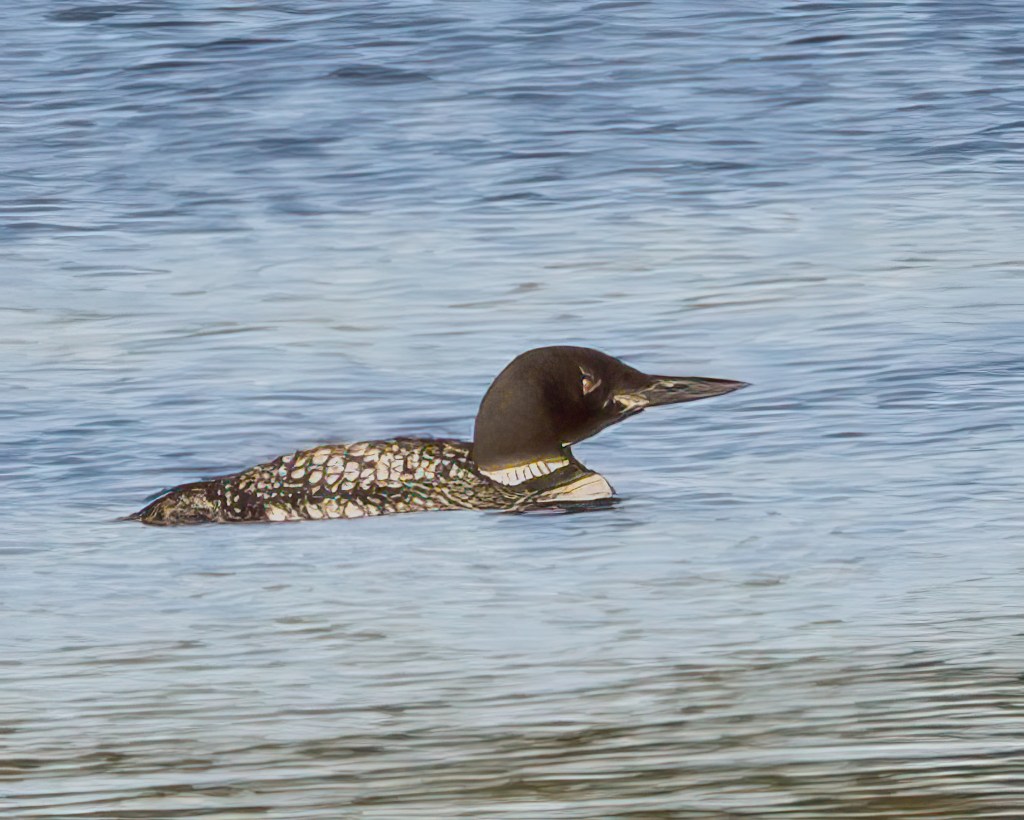 In the evenings we were treated to the call of Loons on the lake. I was able to get a picture of a Loon, although I had to crop in quite a bit which degraded the quality of the image. Here is that image.